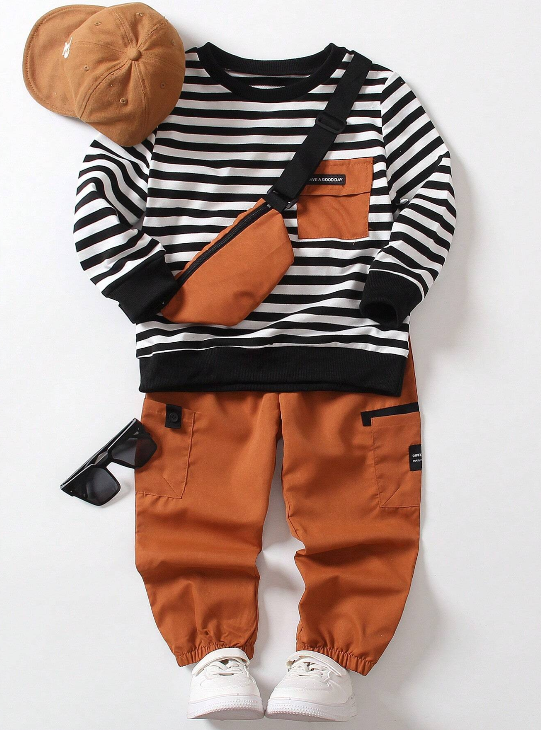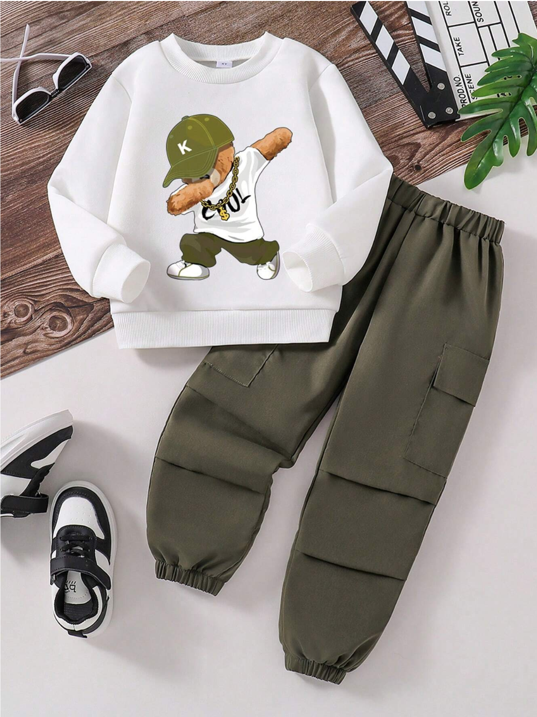 T-shirt à col rond imprimé ours pour jeunes garçons et pantalon cargoDA 3,800.00DA 4,900.00